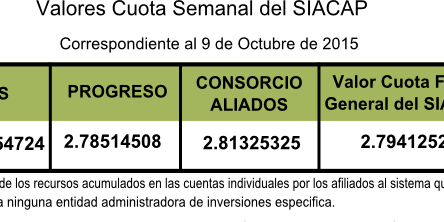 Oct92015CifrasNoticiasValor Cuota Semanal Categoría: Cifras, Noticias, Valor Cuota SemanalPor webpost9 octubre, 2015 Comparte esta entrada Share on FacebookShare on Facebook Share on XShare on X Share on LinkedInShare on LinkedIn Share on WhatsAppShare on WhatsApp Pin itShare on Pinterest Autor: webpost Navegación entre publicacionesAnteriorPublicación anterior:Gobiernos de Chile y Panamá firman acuerdoSiguientePublicación siguiente:Valor Cuota 16 de Octubre de 2015Artículos RelacionadosDisertación virtual y presencial en Procuraduría de la Administración30 octubre, 2025Charla del SIACAP llegó a la Zona Libre de Colón18 agosto, 2025Plática SIACAP Panamá Pacífico18 agosto, 2025Disertación virtual en el MIDA7 agosto, 2025Conferencia del SIACAP en el IDIAP28 julio, 2025BDA recibe charla del SIACAP25 julio, 2025