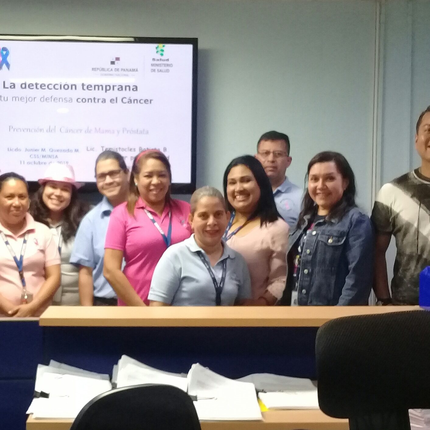 Los Licenciados Junier Quezada de la Caja de Seguro Social (CSS) y Temístocles Batista del Ministerio de Salud dieron una Charla sobre el tema y sensibilizaron al personal del SIACAP sobre la importancia de realizarse las pruebas de mama y próstata cada año.